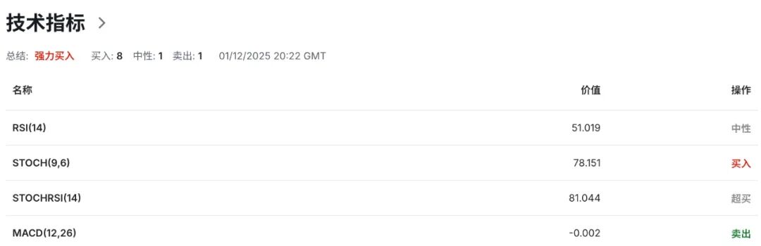 从4小时图技术指标观察,英镑目前围绕布林带中轨震荡整理。值得关注的是,布林带通道呈现极端收窄状态,表明市场波动率已显著下降,暗示价格正积蓄动能,或即将迎来方向性突破。当前上轨约1.3260构成短线动态阻力,下轨约1.3200则提供对应支撑。动能指标方面,相对强弱指数(RSI)回落至50中性水平附近,进一步确认市场多空力量暂时处于均衡状态。